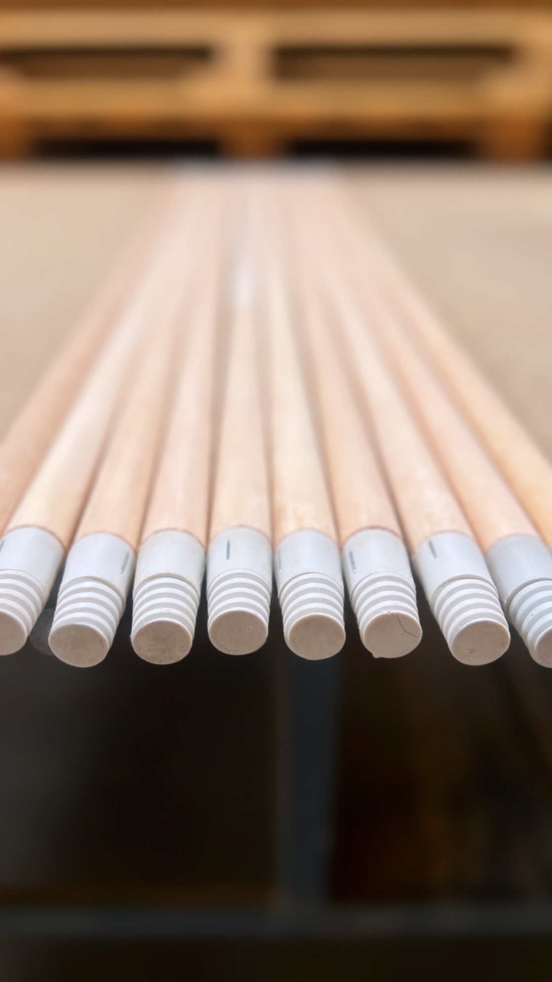 Cada cabo de madeira é cuidadosamente processado para garantir uma qualidade superior, com tratamento que protege contra umidade, insetos e deterioração, prologando sua vida útil.